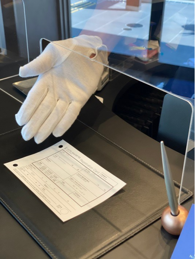 フロントカウンターに飛沫感染防止ボードを設置しております。